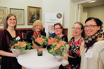 Pristagarna i årets Solveig von Schoultz-tävling: Ann-Sofi Carlsson (I pris), Solveig Eriksson (II pris), Ann-Christine Snickars (III pris), Iris Backlund (hedersomnämnande), Christa Nordlund-Hiltunen (hedersomnämnande).