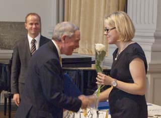 Christoffer Grönholms pris på 10 000 euro gick till Asta Rauhala, Åbo. Som lärare är Asta Rauhala en riktig eldsjäl när det gäller att försvara tvåspråkigheten i Finland. Hon är aktiv debattör och har skrivit flera kåserier i Svensklärarnas medlemstidning Poppis. I sin undervisning har hon betonat kontakten med världen utanför skolan och hennes elever har fått besöka svenskspråkiga företag och skolor i Finland, och teaterbesök på svenska är en tradition. Humor, tolerans och kärleken till svenska språket och finlandssvensk kultur är hennes verktyg i undervisningen. Kontakter har knyts även till Sverige: i samarbete med Naantalin lukio (Päivi Mattila) och Turun klassikon lukio (Arto Heiskanen) blev det ett mångårigt samarbete med gymnasieskolorna i Göteborg.