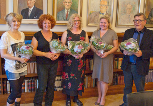 Sonja Ahlfors, Maria Ingman, Ida fellman, Ann-Helen Berg och Ulf Överförs. Pristagare i Solveig von Schoultz-tävlingen 2011.