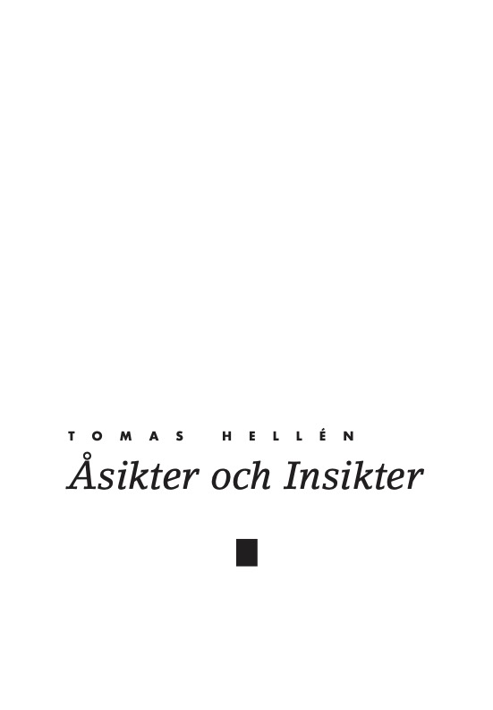 Åsikter och insikter Hans texter från 1990-talet skildrar omdanande decennium i Finlands historia på ett så insiktsfullt sätt skildrar ett så att de är värda att ges ut i bokform. Journalistik i dagspress är visserligen en färskvara - oberoende av kvalitet luktar den fisk nästa dag på salutorget. Även den mest insiktsfulla, visionära, kunniga och stilistiskt fulländade skribent producerar alster som är föråldrade nästa vecka, och bara ibland stöter man på journalister som lyckats bryta dagstidningens formella begränsningar och vars texter känns fräscha långt efteråt. En sådan var Tomas Hellén. Skrifter utgivna av Svenska folkskolans vänner 155 |