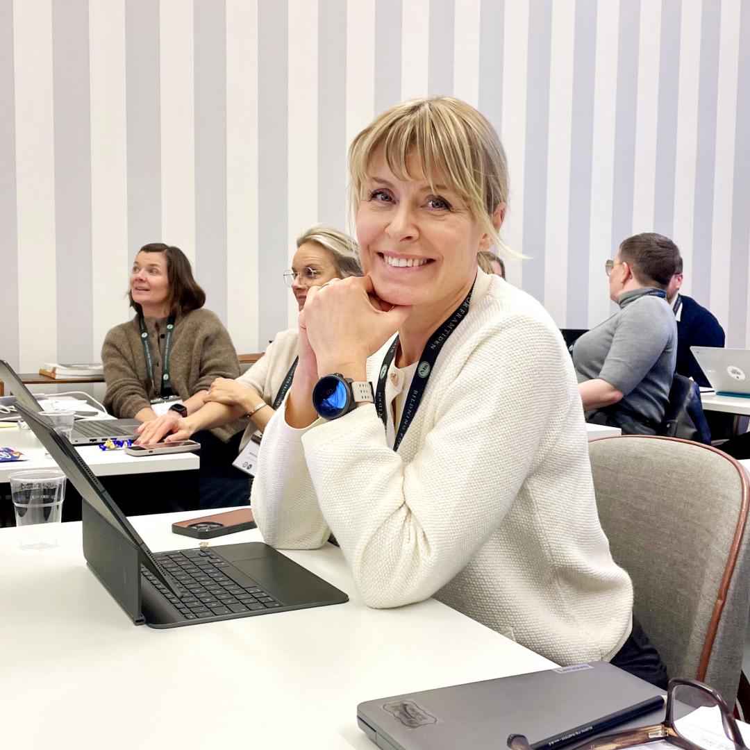 Nora Grotenfelt är förbundsordförande för Hem och Skola och vice ordförande i styrelsen vid Svenska Framtidsskolan i Helsingforsregionen Ab (Yrkesinstitutet Prakticum). Hon deltog i JHO-utbildningen för styrelsemedlemmar på distrikts- och förbundsnivå 2025 och svarade på våra frågor på närstudiedagen i januari i Helsingfors.