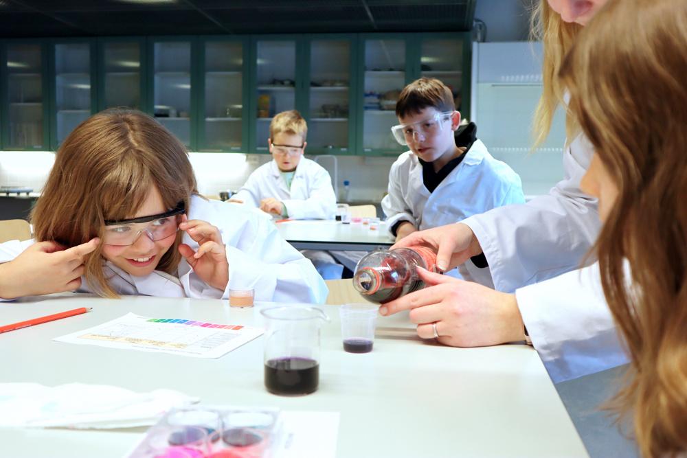 Hur: Barnen får experimentera i riktiga laboratorier under universitetsstuderandes ledning.